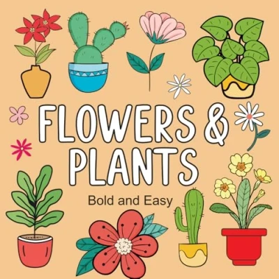 Bold and Easy Flowers & Plants Coloring Book: 52 Big Relaxing Designs for Adults, Seniors, Kids