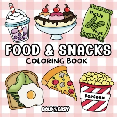 Bold and Easy Food & Snacks Coloring Book: Big Simple Designs for Relaxing Stress Free Hand Drawn Illustrations Adults Kids ... Pages (Bold Books)