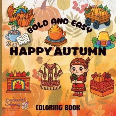 Bold and Easy Happy Autumn Coloring Book: 50 Simple, Fun, Relaxing Fall Designs for Stress Relief Creativity