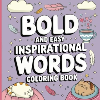 BOLD AND EASY INSPIRATIONAL WORDS COLORING BOOK: 50 POSITIVE AFFIRMATIONS TO BOOST CONFIDENCE CREATIVITY