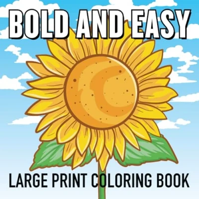 Bold and Easy Large Print Coloring Book: 40 Big Simple Designs for Adults, Seniors Beginners. Animals, Flowers, Food, Still Life, Mandalas more.