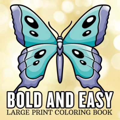 Bold and Easy Large Print Coloring Book: 40 Big Simple Designs for Adults, Seniors, Beginners. Featuring Animals, Flowers, Food, Still Life, Mandalas more.
