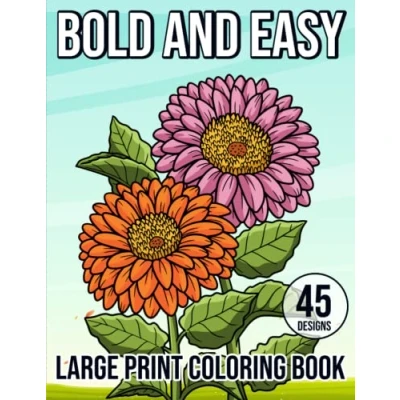 Bold and Easy Large Print Coloring Book: 45 Big Simple Designs for Adults, Seniors Beginners: with Relaxing Flowers or Stress Relief Relaxation