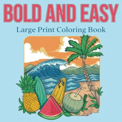 Bold and Easy Large Print Coloring Book: 50 Big Simple Designs for Seniors, Young Kids Beginners. Flowers, Fruits, Landscapes, Animals more.