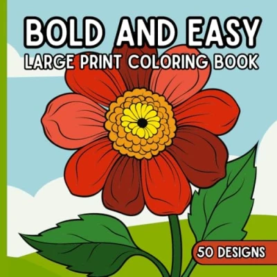 Bold and Easy Large Print Coloring Book: 50 Relaxing Big Simple Pictures to Color for Adults Seniors, featuring Animals, Flowers, Sweets, Nature Scenes, more