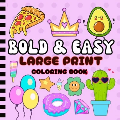Bold and Easy Large Print Coloring Book: 50 Simple Big Designs for Adults, Seniors, Beginners Kids Featuring , Flowers, Food, Animals, Nature More!