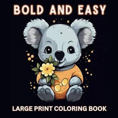 Bold and Easy Large Print Coloring Book: 55 Big Simple Designs for Adults, Seniors Beginners. Animals, Flowers, Food, Still Life, Mandalas more