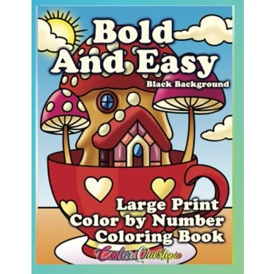 Bold and Easy Large Print Coloring Book Color By Number BLACK BACKGROUND: Simple Designs For Seniors, Teens Adults in Between (Color Adults)