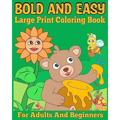 Bold and Easy Large Print Coloring Book for Adults Beginners: Big Simple Designs Pages Women, Seniors Teens