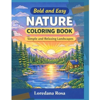 Bold and Easy Nature Coloring Book: Simple Relaxing Landscapes Forests, Lakes, Mountains Waterfalls