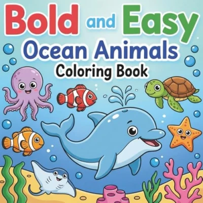 Bold and Easy Ocean Animals Coloring Book: 50 Simple, Cute Sea Creatures Underwater Scenes Fun Book for Kids Ages 48