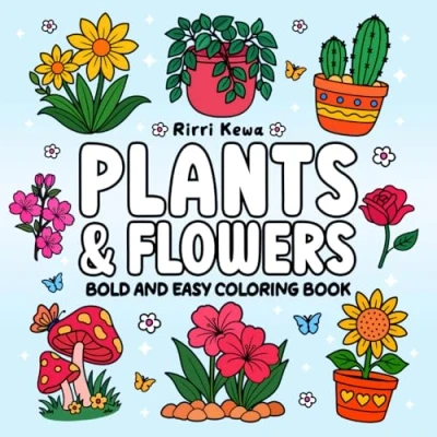 Bold and Easy Plants & Flowers Coloring Book: 50 Simple Big Designs for Adults Kids, Featuring Nature Themed Illustrations Stress Relief Relaxation (Bold Books)