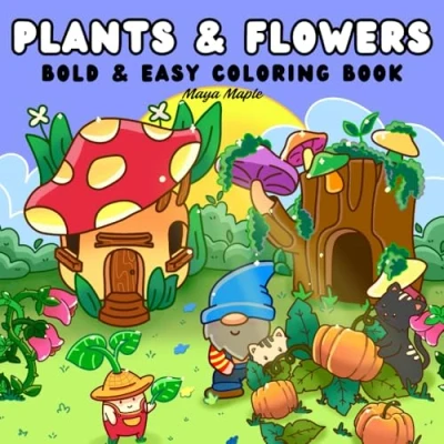 Bold and Easy Plants & Flowers Coloring Book: Relaxing Designs Featuring Adorable Characters Cute Animals for Adults Teens