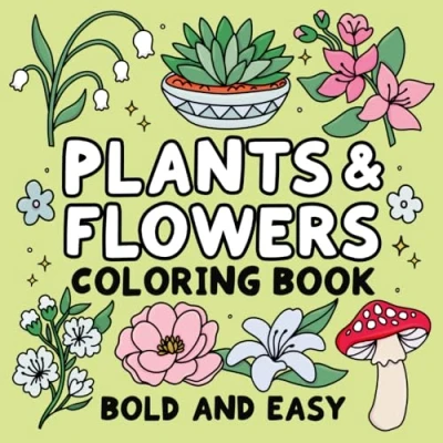 Bold and Easy Plants & Flowers Coloring Book: Simple Relaxing Designs Featuring Nature Themed Illustrations for Adults Kids to Color