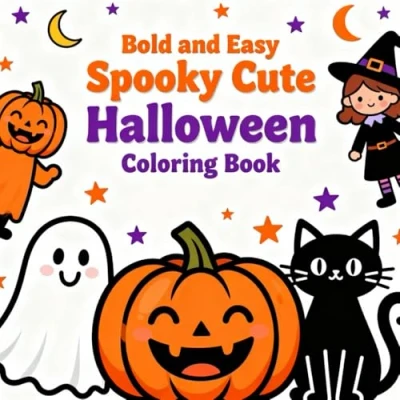 Bold and Easy Spooky Cute Halloween Coloring Book: Fun Simple Pages for Kids Ages 4 8 with Pumpkins, Ghosts, Witches, More Adorable Characters