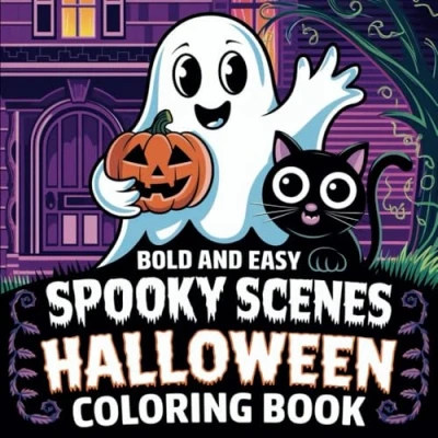 Bold and Easy Spooky Scenes Halloween Coloring Book: 54 Big Simple Designs for Stress Relief Fun Kids, Adults, Seniors