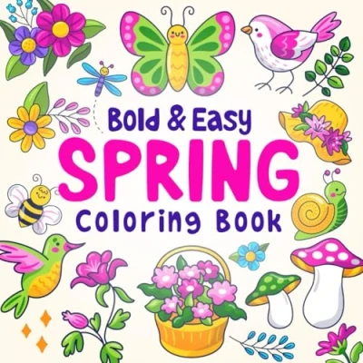 Bold and Easy Spring Coloring Book: 50+ Big Illustrations, Simple Designs for Adults, Kids Seniors, Cute Flowers, Scenes, ... & Books Adults Kids)
