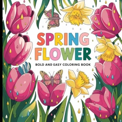 Bold and Easy Spring Flower Coloring Book: Simple Floral Designs for Relaxation Stress Relief.