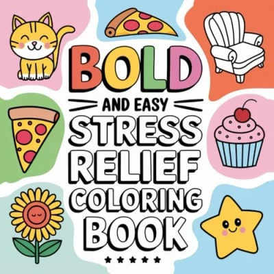 Bold and Easy Stress Relief Coloring Book: Big Simple Designs for Relaxation Featuring Houses, Animals, Flowers, Cars, Cute Things More Adults Kids (Bold & Coloring)