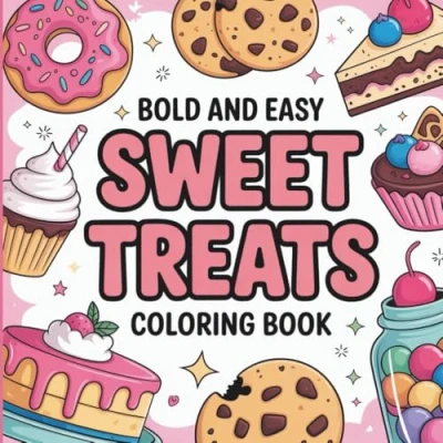 Bold and Easy Sweet Treats Coloring Book: 50 Thick Outline Dessert Designs for Fun, Simple & Relaxing Adults Kids