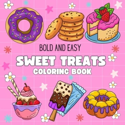 bold and easy Sweet Treats Coloring book: Cute Relaxing Book for Adults Kids Featuring Cupcakes, Desserts, More!