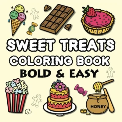 Bold and Easy Sweet Treats Coloring Book: Simple, Big, Cute: Relaxing Thick Line Designs for Adults Kids