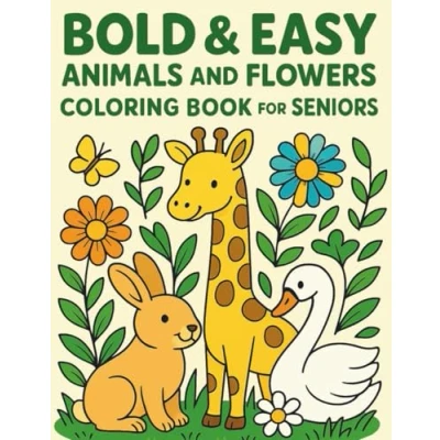 Bold & Easy Animals and Flowers Coloring Book for Seniors: Large Print, Simple Designs Relaxation, Stress Relief Joyful