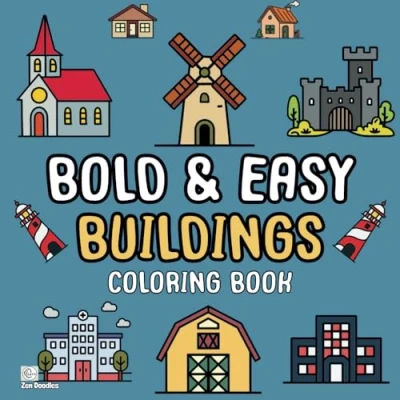 Bold & Easy Buildings Coloring Book: 50 Simple Drawings for Adults and Kids to Enjoy (Easy Books)