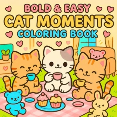 Bold & Easy Cat Moments Coloring Book: Cute Funny For Adults And Kids