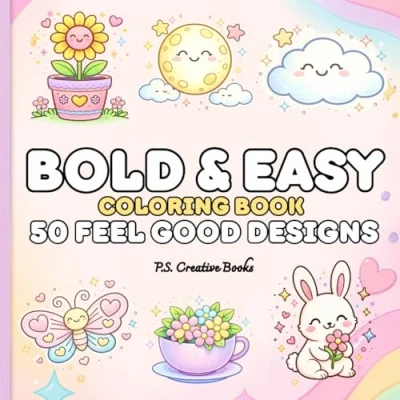 Bold & Easy Coloring Book: 50 Feel Good Designs Cute and Simple Stress Relief Pages for Relaxation Mindful Creativity (Bold ... Relaxing Adults Kids