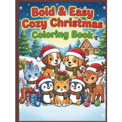 Bold & Easy Cozy Christmas Coloring Book: Cute Relaxing Holiday Scenes for Kids, Teens Adults