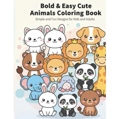 Bold Easy Cute Animals Coloring Book: Simple and Fun Designs for Kids Adults: 43 Animal Illustrations Stress Relief Creative