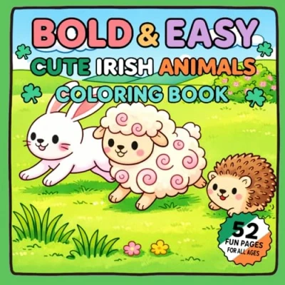 Bold & Easy: Cute Irish Animals Coloring Book: 52 Fun and Simple Pages Featuring Animals, Shamrocks, Rainbows, More Perfect for Kids, Adults, Seniors