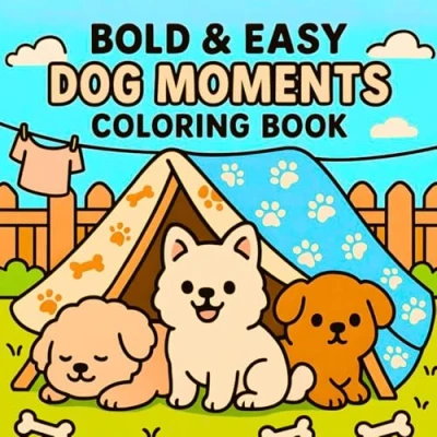 Bold & Easy Dog Moments Colouring Book: Cute Fluffy, Funny For adults and Kids