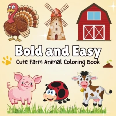 Bold & Easy Farm Animals Coloring Book: 50 Simple Cute Pages for Toddlers and Preschoolers Big Lines Single Sided (Bold Books Kids)