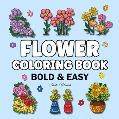 Bold & Easy Flower Coloring Book: Cute Designs for Adults, Teens, and Kids Simple Illustrations with Thick Lines (Bold Coloring)