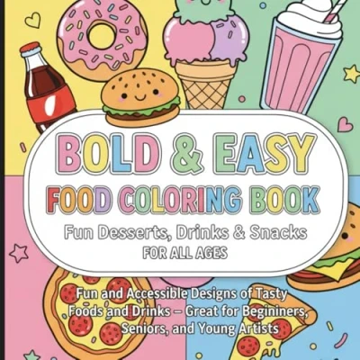 Bold & Easy Food Coloring Book: Fun Desserts, Drinks Snacks for All Ages: and Accessible Designs of Tasty Foods Great Beginners, Seniors, Young Artists