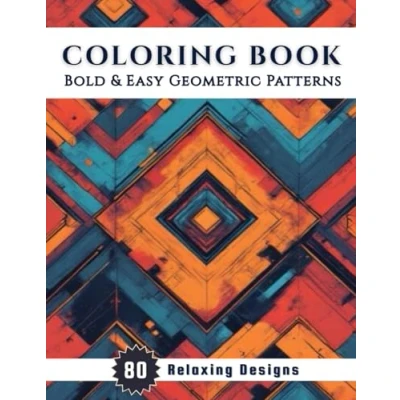 Bold & Easy Geometric Patterns Adult Coloring Book with 80 Relaxing Large Shape Designs for Stress Relief (Thick Lines)