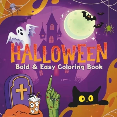 Bold & Easy Halloween Coloring Book: Cute Book for Kids, Teens, and Adults: 45 Cozy, Fun Relaxing Designs