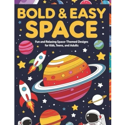 Bold & Easy Space Coloring Book: Fun and Relaxing Themed Designs for Kids, Teens, Adults