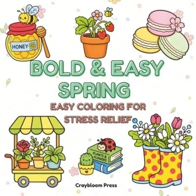 Bold & Easy Spring Coloring Book Relaxing, Simple Designs for Stress Relief Cute Flowers, Gardens Cozy Scenes: 40 ... Pages (Bold Series)