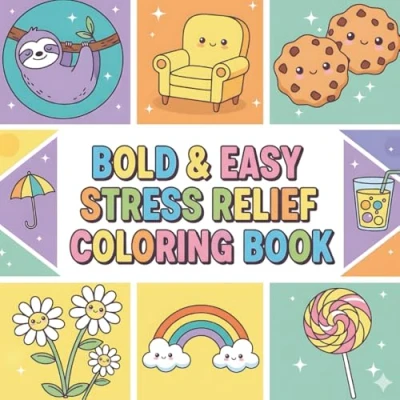 Bold & Easy Stress Relief Coloring Book: Simple and Relaxing Designs for Adults Kids