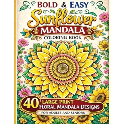 Bold & Easy Sunflower Mandala Coloring Book: 40 Large Print Floral Designs for Adults and Seniors (Beautiful Flower Book Series)