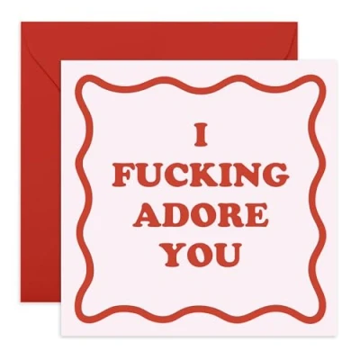 Bold Love Card 'I F***ing Adore You' Greetings for Him, Her, Girlfriend, Boyfriend, Partner Anniversaries, Valentine's Day, or Special Occasions Comes with Fun Stickers
