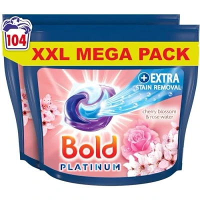 Bold Platinum PODS® Washing Liquid Laundry Detergent Capsules 104 Washes (52x2), Cherry Blossom & Rose Water, Extra Stain Femoval, With Built In Lenor Softener