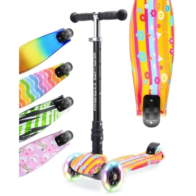 WIDE DECK - The 3 wheeler footplate is 15cm / 5.9″ (W) wide and 30.5cm / 12″ (L) in length, designed for older kids aged 6-10 years to scoot and ride with comfort HEIGHT ADJUSTABLE - The kickscooter handle extends up to 89cm / 35″ and is fitted with buttons, to make height adjustment as simple as possible with 5 pre-determined height options. For the best kids scooter experience, we suggest the child’s height to range between 75cm - 135cm / 29.5 - 53″. FOLDABLE & TRAVEL READY - This childrens scooters' Lift & Fold tech means you're ready to go from park to car in 5 seconds, just pull up the shaft and fold. Travelling with your kid's kick scooter will always be a breeze. BEAMING WITH CONFIDENCE - we want your little one to glide with confidence, that's why we offer our unique three wheeled scooter deck designs, LED light up wheels and rear wheel light reflectors FULLY REPLACEABLE PARTS - Designed to last, but easy to repair! Every BOLDCUBE kick scooter is designed to be 95% repairable by parts, so no scooter needs to go to landfill! This scooter for kids come with a set of allen keys for scooter MOTs. Our friendly customer service team provide UK, EU & US local email & video support whatever your query :)