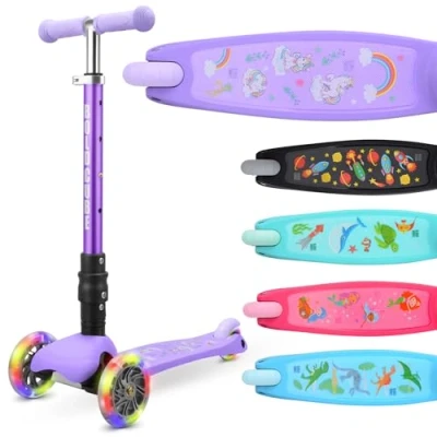 Amazon ROBUST FIRST SCOOTER - BOLDCUBE’s Teeny FOLD Scooter is the perfect entry level kids tri wheel kick scooter for little children aged 3 - 9 years old. Engineered with a Lean to Steer / Tilt to Turn steering system and completely self balancing, it’s the ideal first scooter for toddlers & little kids developing balance and confidence to take the pavements! LIGHTWEIGHT & FOLDABLE- Once your little kid is tired of riding, the FOLDABLE scooter can be folded to store, pulled in a trolley style on their way home or by helping them along with a three wheeled scooter pulley strap. READY TO GLOW - We want your mini rider to cruise with confidence, that's why we offer our vibrant colourways, bold deck designs and multi colour flashing LED LIGHT UP wheels for scooting around with pride day or night GROW & EXTEND - The height adjustable handlebar of this children's scooter extends from 61-79cm / 24 - 31″ and is fitted with 4 predetermined height buttons, to make height adjustment as simple as possible for a young rider. We typically suggest the child’s height to range between 85cm - 130cm / 2.7ft - 4.7 ft FULLY REPLACEABLE PARTS - Designed to last, but easy to repair! Every BOLDCUBE kids scooter is designed to be 95% repairable by parts, so no scooter needs to go to landfill! Every scooter comes with a set of allen keys for scooter MOTs. Our friendly customer service team is happy to help whatever your query, including video support :)