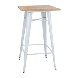 Bolero Bistro Bar Table with Wooden Top White (Single)