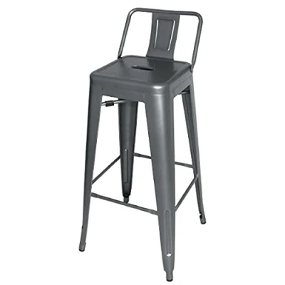Bolero Bistro High Stool With Backrest Set (Pack of 4), Gun Metal Grey, Powder Coated Steel, Seat Height: 770mm, Indoor and Outdoor Stools Restaurant, Bars, Clubs Home Use, DM935