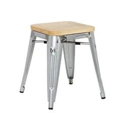 Bolero Bistro Low Stools with Wooden Seat Pad (Pack of 4), Galvanised Steel Frame & Ash Seat, Stackable, Height: 450 mm, GM634